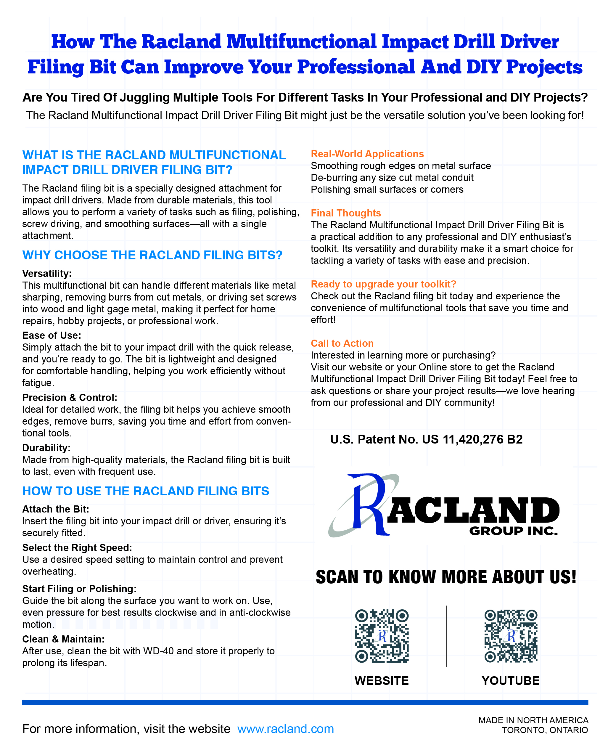 Unlike standard bits, the Racland Multifunctional Bit features a proprietary cutting-edge design that improves: